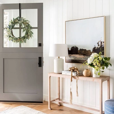 Freshen up your space with some nature-inspired flair when you display the Treeline Abstract Framed Canvas from Threshold™ designed with Studio McGee. This framed artwork displays an abstract landscape portrait of a treeline along water for a soothing aesthetic you’ll love. A thin, light-wood frame adds to the nature feel without detracting from the image. Measuring 36 inches by 36 inches, this framed landscape art is sure to making a striking piece of decor wherever it’s placed. Let it stand out on its own on a wall, or lean it against a mirror to create more visual interest.