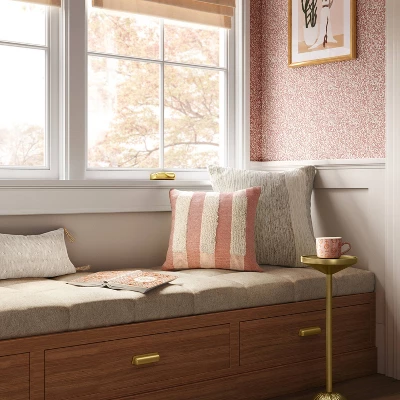 Bring timeless style to your living room decor with this Oversized Woven Jacquard Lumbar Throw Pillow with Tassels from Threshold™. This rectangular throw pillow comes enveloped in a soft, cotton-blend jacquard fabric with filling for cushioned comfort. Designed with knife-edge detailing for a crisp look, it features a jacquard-weave pattern with tassels on each corner to add eye-catching flair to any chair it’s tossed on. Best of all, the removable cover makes cleaning a breeze.